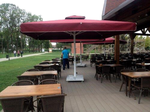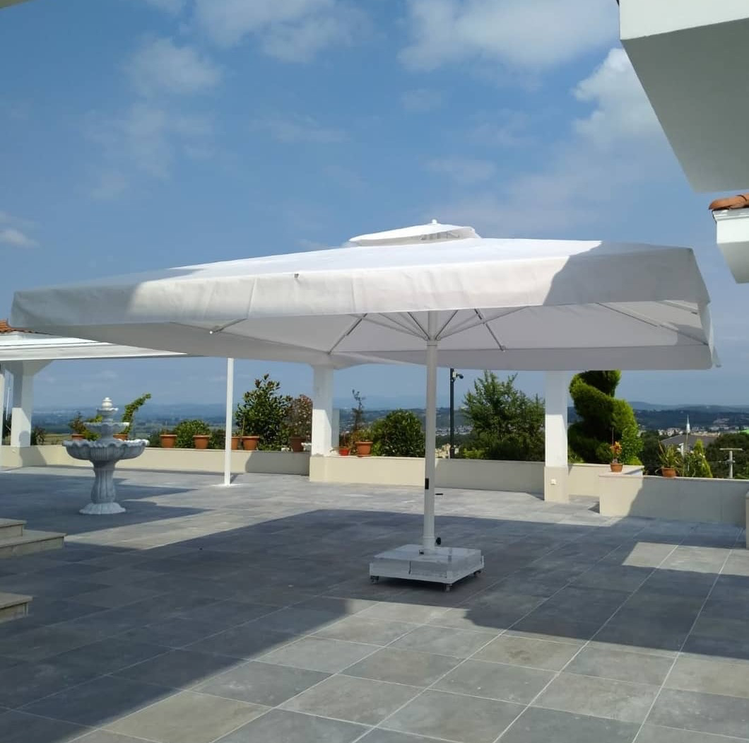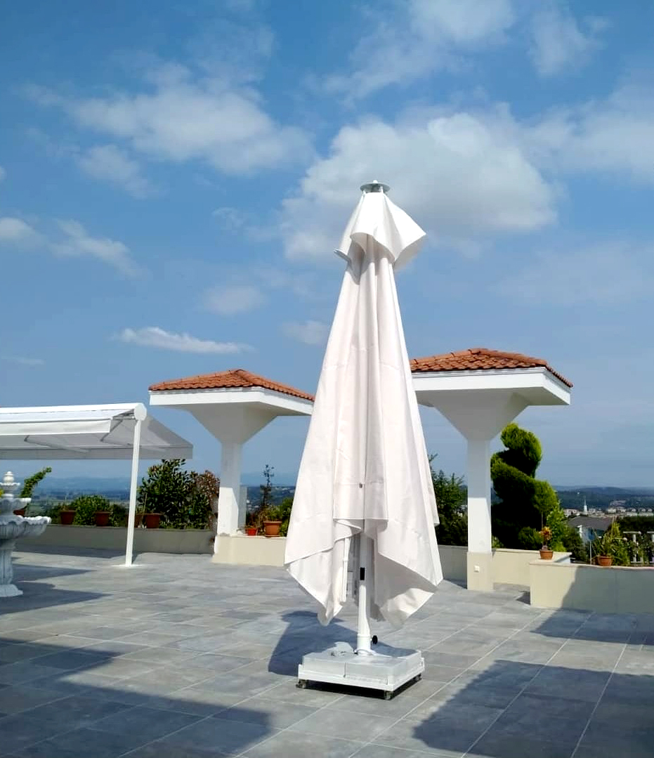 Mekanizma: Açma-Kapama ana gövde içine yerleştirilmiş çelik dişli ve döner kol ile yapılmaktadır. Şemsiyeler gövdelerine yerleştirilmiş teleskopik mekanizma sayesinde kapatılırken yükselmekte olup, altındaki masa ve sandalyelerin toplanmasına gerek kalmamaktadır. Ayrıca şemsiye bezinin ortasındaki boş bırakılan kısım üzerinde aşırı rüzgar / sıcakta hava tahliyesini sağlayan ana mekanizma ile birlikte açılıp kapanan ikinci bir şemsiye (veya baca) görünümünde havalandırma tertibatı vardır.